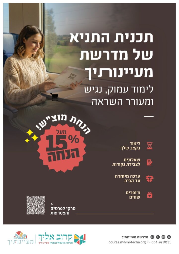 סטודנטית יקרה, מוזמנת למסע פנימי עם ספר התניא. נלמד יחד בקצב נינוח – בדרך פשוטה, אישית ומשמעותית.